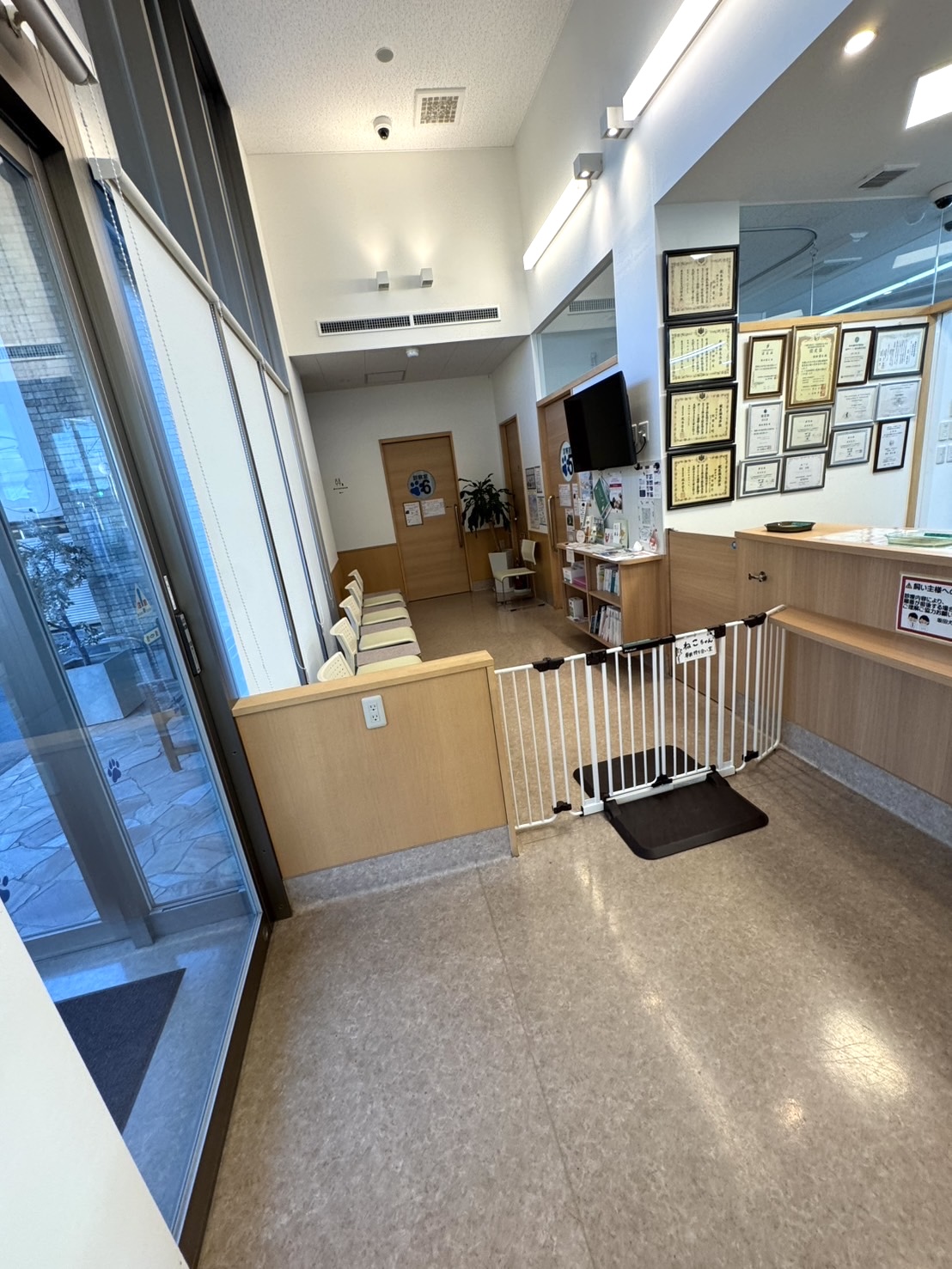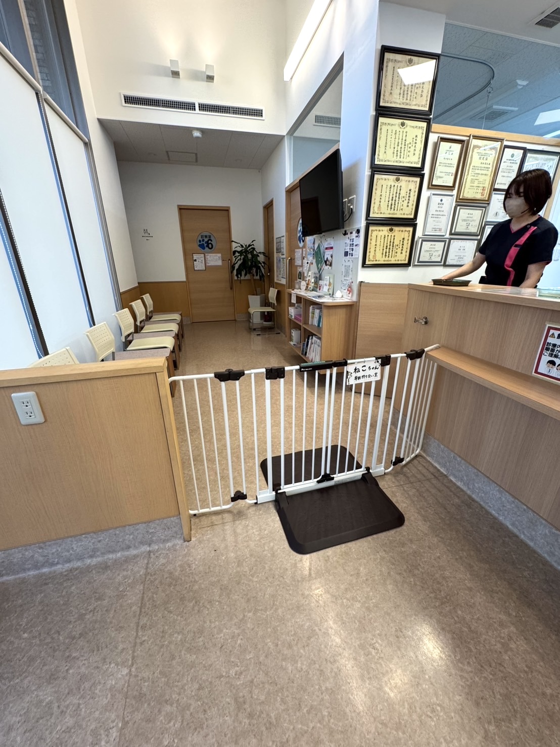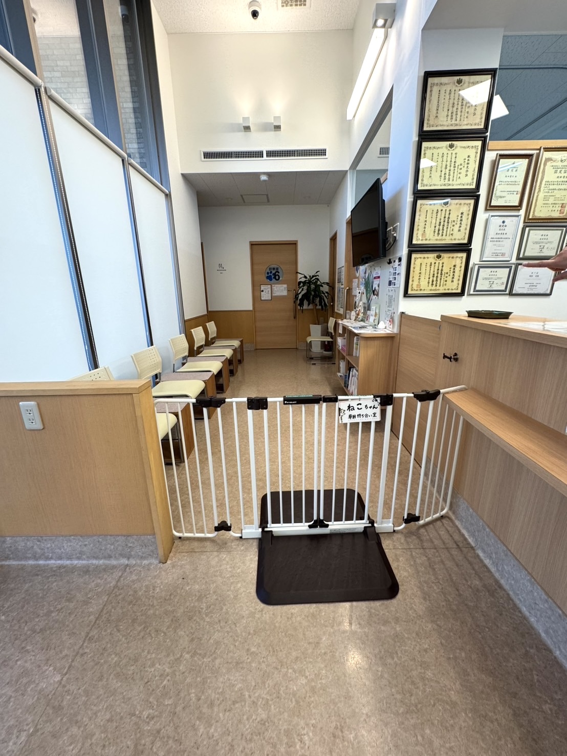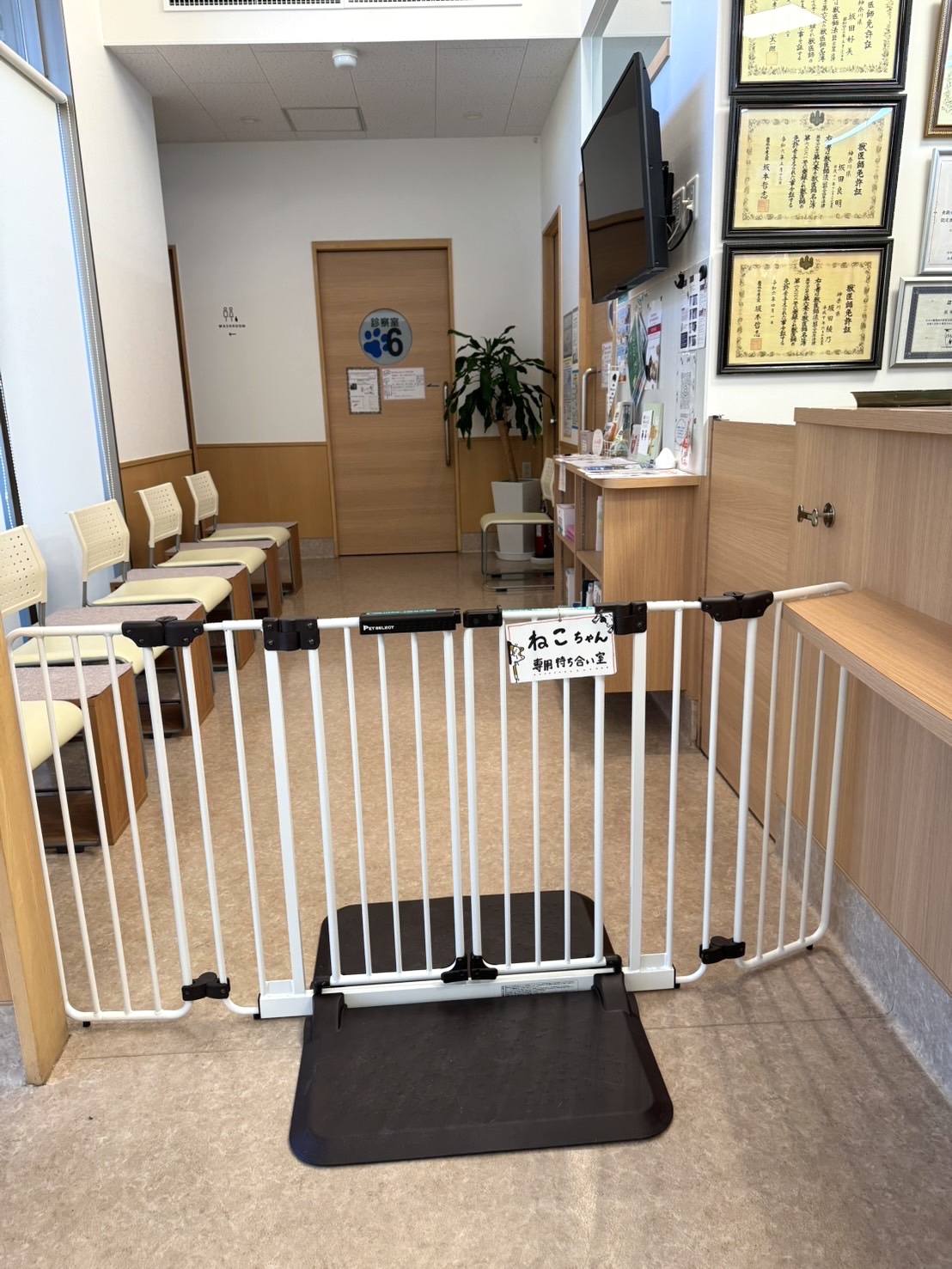ゲートの設置により、わんちゃんがねこちゃん待合に遊びにくることが難しいので、ねこちゃんの飼い主様は安心してご来院下さい😊