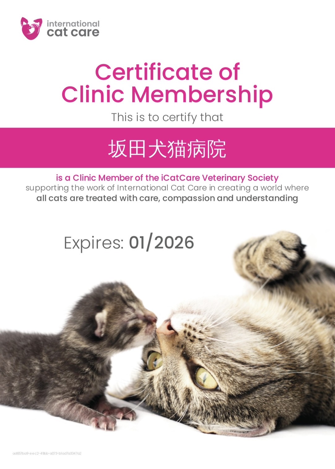 坂田好美獣医師が、2023年4月1日付で、日本獣医腎泌尿器学会認定医を取得したことをご報告いたします。